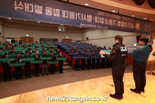 [뉴스21/장병기 기자] 광주경찰청은(청장 한창훈) ’24. 2. 20(화) 14:00 광주경찰청 강당에서 「기동순찰대ㆍ형사기동대 합동 발대식」을 개최하였다.