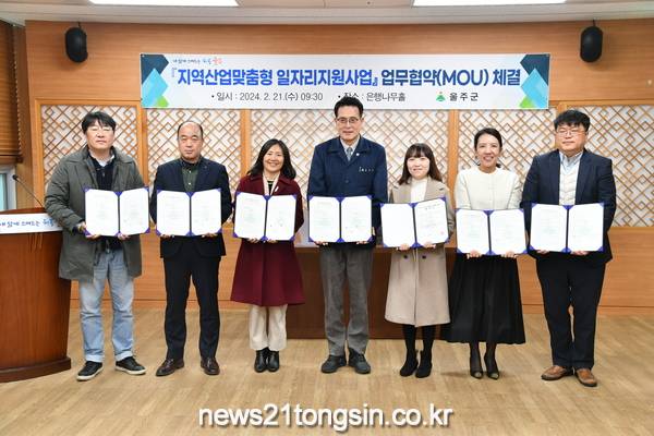 (뉴스21통신/우정석기자) = 울산시 울주군이 21일 군청 은행나무홀에서 ‘울주형 지역산업맞춤형 전문인력 육성사업’과 ‘지역산업맞춤형 일자리창출 지원사업’ 업무협약을 체결했다.
