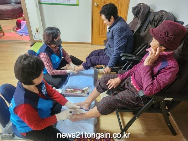 의료 기반이 취약한 관내 경로당 108개소를 방문해 발 관리뿐만 아니라 대화를 통한 마음의 관리까지 이행하고 있다.