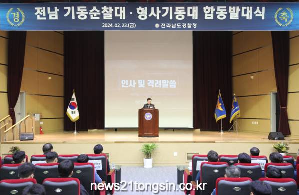 [뉴스21통신 박민창기자] 전남경찰청은 23일 청사 내 1층 남악홀에서 기동순찰대와 형사기동대 합동 발대식을 개최하였다.