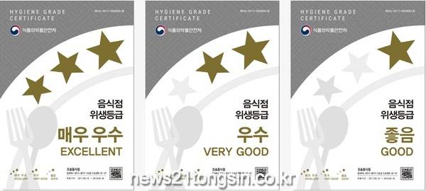 ‘음식점 위생등급제’는 식품의약품안전처에서 주관하는 것으로, 영업자가 자율로 위생등급 평가를 신청하고 평가점수에 따라 등급을 지정·홍보하는 제도다. 3개 위생분야 64개 항목의 평가를 거쳐 매우우수, 우수, 좋음 3개 등급을 부여한다.