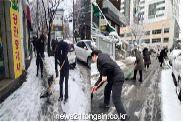 한편, 중곡1동은 지역 내 대표기업체인 삼원특수지, 케이티엔지니어링과 함께 눈을 쓸어 군자역 주변을 말끔히 정비했다.