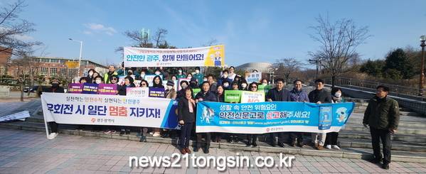 [뉴스21/장병기 기자] 광주광역시(시장 강기정)는 26일 상무지구 5‧18기념공원 앞 교차로에서 ‘안전실천! 안전광주!’를 주제로 민관 합동 안전문화 캠페인을 벌였다.
