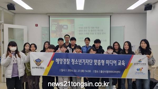 (뉴스21통신/우정석기자) = 울산해양경찰서(서장 정욱한)는 27일 오후 울산 시청자미디어센터에서 해양경찰 청소년 공감소통 기자단 대상 맞춤형 미디어 제작 교육을 진행했다고 밝혔다.