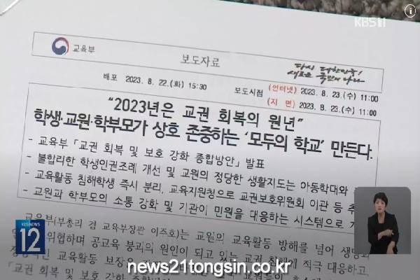 ▲ 사진=KBS뉴스캡쳐지난해 7월 서울 서이초등학교에서 숨진 채 발견된 20대 교사가 학부모들의 민원에 시달렸다는 의혹에 교권 회복 촉구 집회가 이어졌다.