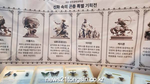 이번 특별기획전은 신화 속 포세이돈의 삼지창을 닮은 넵툰장수풍뎅이, 천공을 떠받치고 있는 아틀라스의 형상을 한 아틀라스 장수풍뎅이 등 다양한 곤충과 전 세계 신화 와 곤충 관련 이야기들로 관람객들에게 친근하게 다가갈 예정이다.