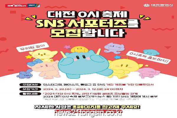 대전시는 오는 8월 개최되는 '2024 대전 0시 축제'의 체계적이고 공격적인 홍보를 위해 전국 인플루언서를 대상으로 SNS 서포터즈를 모집한다.