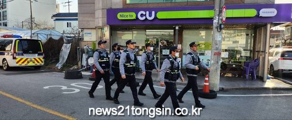 ▲ 기동순찰대활동사진[뉴스21/장병기 기자] 광주경찰청은(청장 한창훈) 지난 20일 정식 출범한 기동순찰대는 과학적 분석을 통한 범죄취약지 및 다중 운집 장소에 경력을 집중투입하여 시민의 평온한 일상을 유지하기 위한 활동을 전개 중이다.