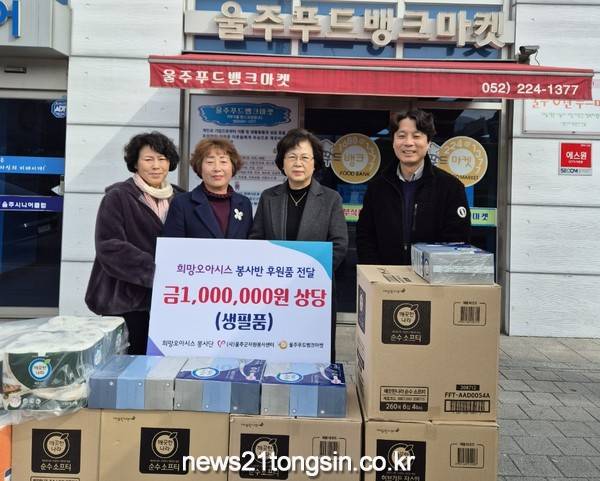 (뉴스21통신/우정석기자) = 희망오아시스 봉사단(회장 임분선)이 28일 울주푸드뱅크마켓(마켓장 손영순)에 지역 내 어려운 이웃을 위한 100만원 상당의 후원품을 전달했다.
