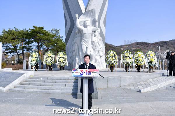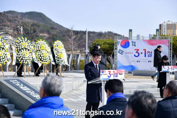 이날 기념식에는 정기명 시장을 비롯한 독립유공자 유족, 보훈단체장 등 120여 명이 참석해 순국선열과 애국지사의 숭고한 나라사랑 정신을 기리고, 3·1운동의 역사적 의미를 되새기는 시간을 가졌다.