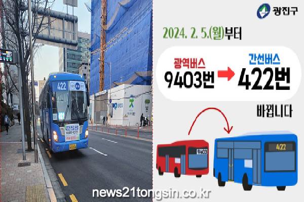 ▲ 사진=광진구청광진구가 9403번 광역버스를 422번 간선버스로 전환해 버스 이용객이 대폭 늘어났다고 밝혔다.