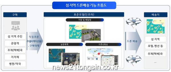 이를 위해 드론 이착륙장, 물품수취시설, 드론상황실 등 배송 인프라를 구축하고 비행로 개발, 드론안전관리시스템 등 섬 드론 배송 실증을 추진할 계획이다.