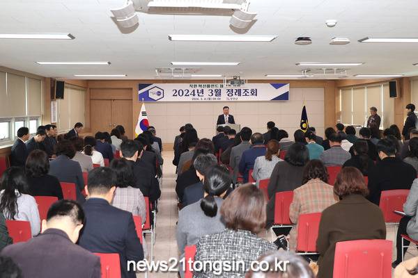 [뉴스21통신 박찬웅기자] 전남 무안군(군수 김산)은 4일 군청 회의실에서 직원 100여 명이 참석한 가운데 3월 정례조회를 개최했다.