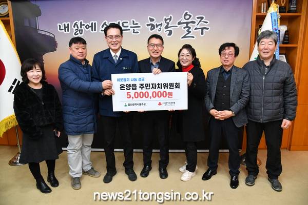 (뉴스21통신/우정석기자) = 울주군 온양읍 주민자치위원회(위원장 박순동)가 5일 울주군청을 방문해 지역사회 취약계층 지원을 위한 성금 500만원을 전달했다.