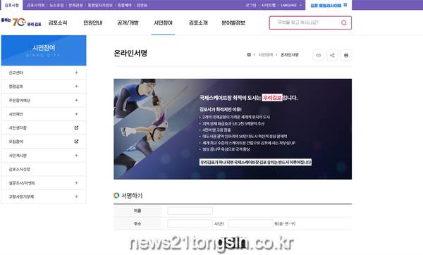 이번 서명은 김포시청 홈페이지에서 온라인으로 진행되며 김포시민이라면 누구나 참가할 수 있고, 결과가 발표되는 그날까지 시민의 염원을 담아낸다.