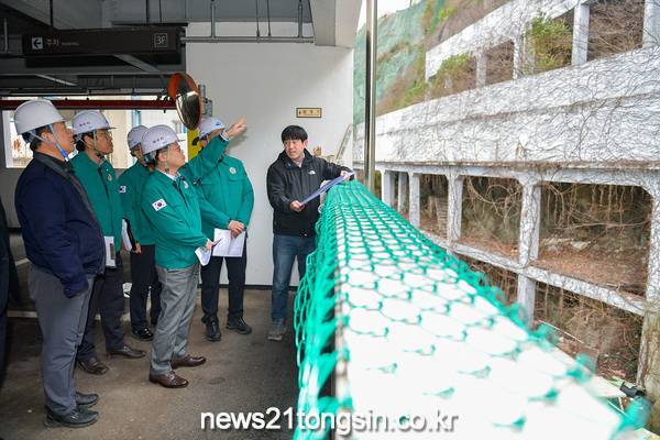 지난 5일에는 김종기 부시장이 관내 고위험 취약지역인 수정지구와 소라지구 급경사지 현장을 찾아 낙석 방지망 등의 안전시설물 설치 상태, 위험지역 안내 표지판 설치 등을 직접 점검했다.