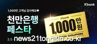 케이뱅크는 고객 수 1000만 돌파를 기념해 고객 감사 \'천만은행 페스타\' 프로모션을 실시한다고 6일 밝혔다.
