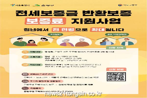 은평구는 4일부터 전세사기 등으로 인해 임차인이 보증금을 돌려받지 못하는 피해를 예방하고자 '전세보증금 반환보증 보증료 지원 사업'을 실시한다고 밝혔다.