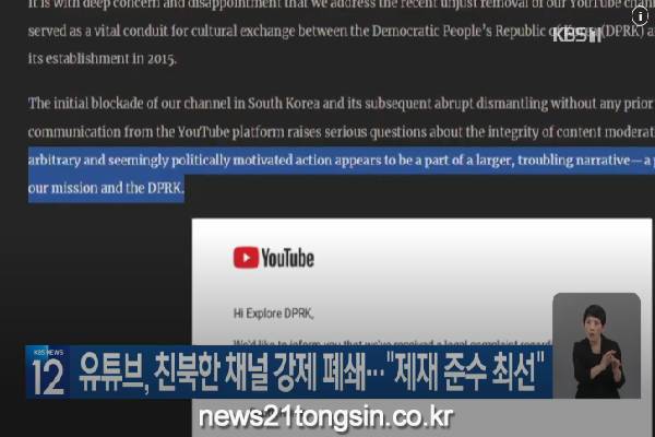 이에 앞서, 조선중앙TV 영상을 유튜브에 올려온 채널도 지난달 접속이 차단됐다.
