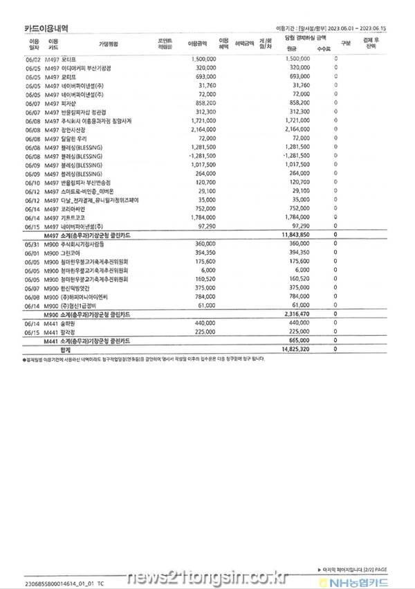 ▲ 사진=공무원이 보낸 카드내역서 원장