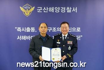 심씨는 구조활동을 펼치고 있는 해경을 돕기 위해, 민간선박들이 구조에적극 참여할 수 있도록 어민들에게 상황을 전파하는 등 선박 안전관리에 최선을 다한 것으로 알려졌다. 이날 감사장을 받은 비응어촌계장 심명수씨는 “사고 당일 비응항에 바람이 거세게 몰아쳐 항내 계류 중인 어선들에 대한 안전상태를 확인하기 위해 순찰하던 중 배가 떠밀려가는 것을 우연히 목격하고 해경과 함께 구조에 나설 수 있었다” 며 “바다에서 생업을 하는 사람으로써 당연히 해야할 일을 했을 뿐” 이라고 말했다.박경채 군산해경은 “생업으로 바쁜 와중에 주저 없이 해경을 도와 국민의 생명과 재산을 보호하는데 큰 역할을 해준 것에 깊은 감사와 경의를 표한다” 고 말했다. 한편, 심씨 외에도 평소 항내 안전관리에 최선을 다한 성진호 선장 김춘희씨와 비응항 내 해양쓰레기 수거 등 깨끗한 해양환경 조성을 위해 아낌없는 지원과 노력을 해준 자율관리어업 사무처장 김은랑씨도 함께 감사장을 수여 받았다. (뉴스21통신/송태규기자)