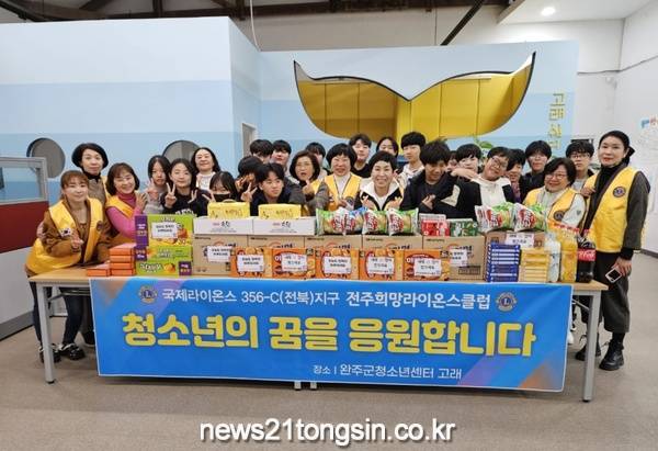 [전북=뉴스21] 오충일 기자= 전주희망라이온스클럽(회장 임영례)이 청소년들의 새학년을 축하하고, 청소년들의 꿈을 응원하는 마음을 담아 완주군 고산면에 위치한 완주군청소년센터 고래에 간식을 후원했다.