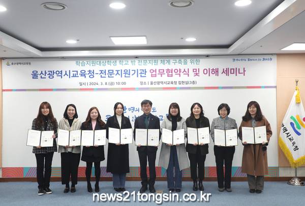 울산교육청은 8일 시교육청 집현실에서 학습지원 대상 학생 전문 지원기관 31곳과 업무협약을 했다.