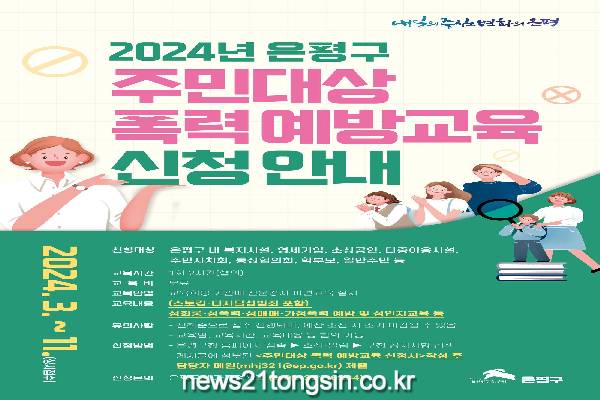 신청 방법은 은평구청 누리집 공지사항에 게시된 교육 신청서를 작성해 해당 이메일로 신청하면 된다. 단, 선착순으로 진행돼 예산 소진 시 조기마감 될 수 있다.