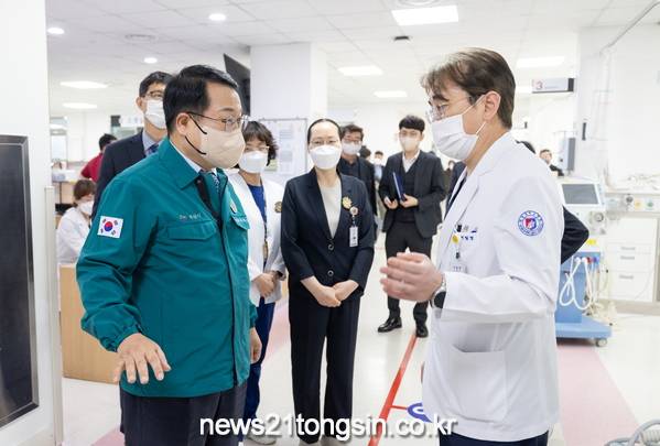 정 시장은 서일영 원광대병원장과 함께 권역응급의료센터 운영 상황 전반을 점검했다.