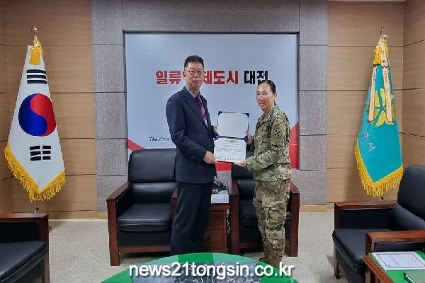 이장우 대전시장은 14일 윌러드 벌슨(Willard M. Burleson III) 미8군 사령관으로부터 대전지구전투 전승기념 행사의 지속적 개최에 대한 감사의 뜻을 담은 감사장을 받았다. 감사장은 임묵 대전시 시민안전실장에게 대신 전달됐다.