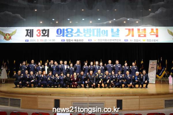 정읍소방서(서장 강봉화)와 정읍의용소방대연합회(회장 손주섭, 김성순)는 15일 14시에 ‘의로운 마음, 뜨거운 용기로 국민과 함께하는 위대한 발걸음’ 이라는 주제로 ‘의용소방대의 날’ 기념 행사를 개최했다.