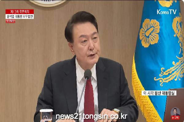윤석열 대통령을 오늘(19일) 제13회 국무회의 모두 발언에서 "민주주의 정상회의는 오늘날 민주주의가 직면한 도전에 대해 여러나라 정상과 각료들이 의견을 교환하고 지혜를 모으는 자리다."라고 말했다.