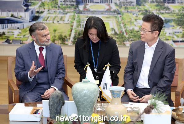 나빌 무니르(Nabeel Munir) 주한 파키스탄 대사 일행이 18일 경상북도-파키스탄 간 우호 교류 관계 확충에 대한 논의를 위해 이철우 경상북도지사를 예방했다.