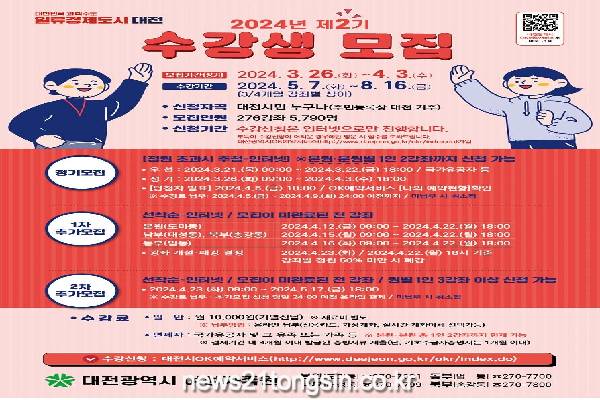 대전여성가족원은 26일 9시부터 오는 4월 3일 18시까지 9일간 2024년 제2기 강좌 수강생 5,790명을 모집한다.