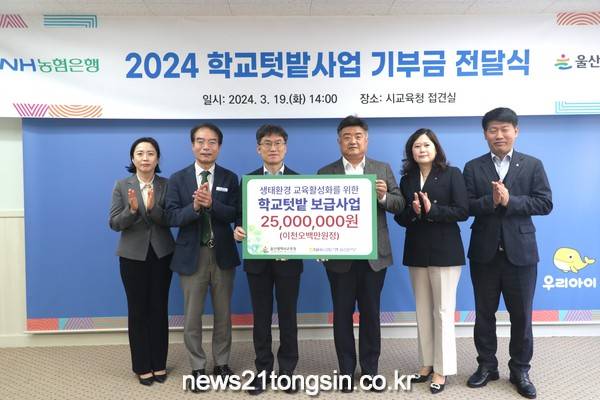 (뉴스21통신/우정석기자) = NH농협은행 울산본부(본부장 이영우)가 울산광역시교육청(교육감 천창수)에 학교 텃밭 사업 기부금으로 2,500만 원을 전달했다.