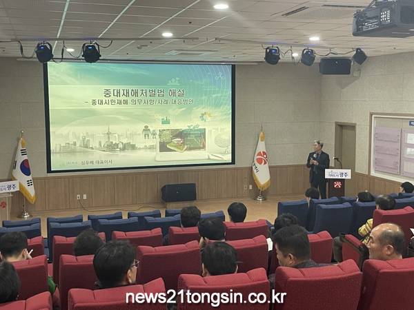 [뉴스21통신/장병기 기자] 광주광역시는 시, 공사·공단, 출자·출연기관 등 중대재해 업무담당자를 대상으로 19일 시청 무등홀에서 ‘중대시민재해 예방교육’을 실시한데 이어 21일 ‘중대산업재해 예방교육’을 실시한다.