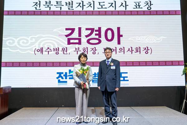 전주예수병원(병원장 신충식)은 산부인과 김경아 과장이 최근 열린 전라북도의사회 ‘51차 정기대의원 총회’에서 전북특별자치도지사 표창을 받았다고 21일 밝혔다.