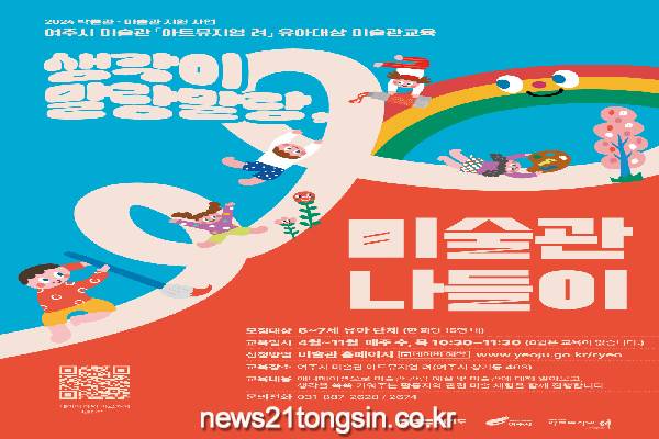 여주시 미술관 '아트뮤지엄 려'에서는 오는 4월 18일부터 11월 28일 매주 수요일과 목요일 오전 10시 30분에 진행되는 유아 대상 미술관 교육프로그램 '생각이 말랑말랑, 미술관 나들이' 참여단체(5~7세 유아 단체)를 모집한다.