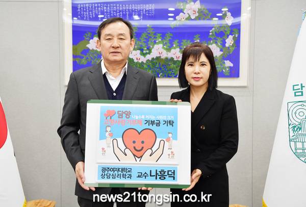 담양군은 광주여대 상담심리학과 나흥덕 교수가 고향사랑기부금을 기탁했다고 22일 밝혔다. 나 교수는 평소 지인들과 자주 방문하며 담양군에 관심과 애정을 가져오던 중 지인의 추천을 받아 고향사랑기부제에 동참하게 됐다.