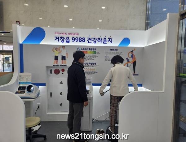 건강라운지는 거창읍행정복지센터를 방문하는 민원인이 라운지 내 설치된 측정 장비를 통해 체중은 물론 체성분, 비만, 혈압, 스트레스 지수 등 건강 정보까지 확인할 수 있는 시설이다.