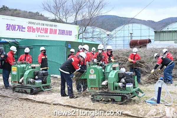(뉴스21통신/권혁진기자) = 울산 북구는 25일 강동동 장등마을회관 근처에서 영농부산물 파쇄작업을 진행했다.