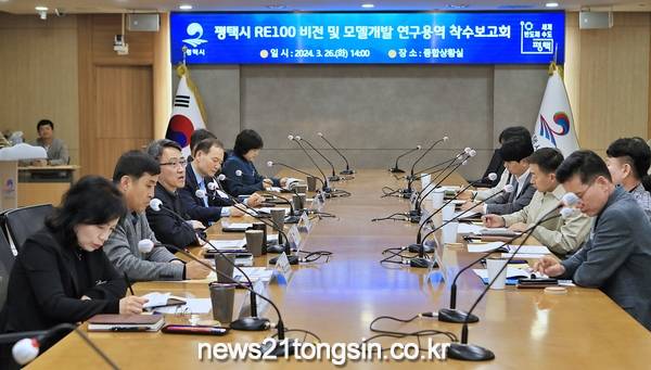 평택시(시장 정장선)는 지난 26일 시청 종합상황실에서 평택시의 지역적 특성에 적합한 RE100 전략을 제시하고 평택형 모델을 개발하기 위한 「평택시 RE100 비전 및 모델개발 연구용역 착수 보고회」를 개최했다.