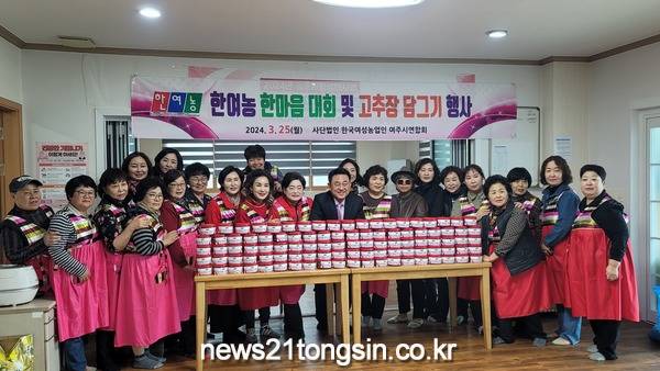 사)한국여성농업경영인 여주시연합회는 25일 흥천면 율극1리 마을회관에서 불우이웃을 돕기를 위한 고추장 담그기 행사와 나눔행사를 가졌다.