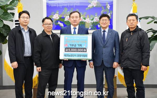 이날 기탁식에는 에코하이테크농공단지 경영자협회 허수탁 회장을 비롯한 4명의 회원이 함께했으며, 이번 기탁식을 계기로 기업과 지역이 상생하는 경제 활동을 위해 힘쓰겠다고 뜻을 모았다.