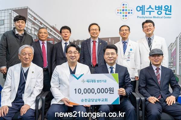 순천금당남부교회(담임목사 고창주)는 전주예수병원을 방문해 병원 발전기금 1000만 원을 후원했다고 28일 밝혔다.