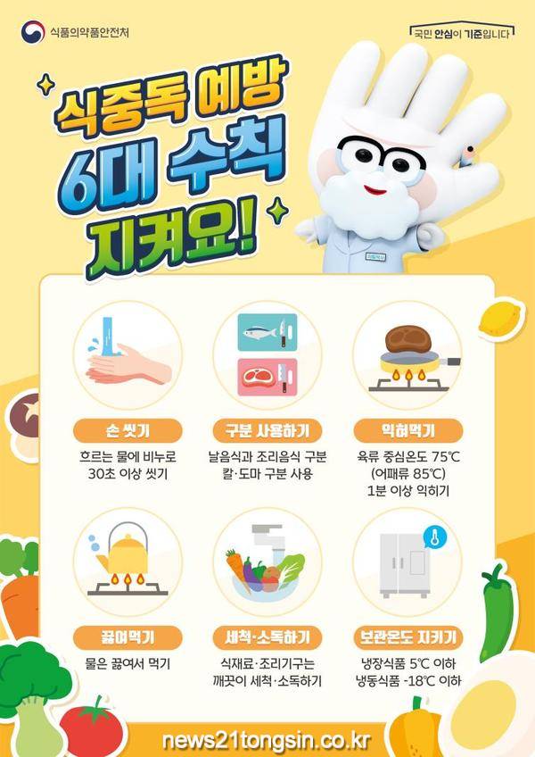 식중독은 특정 계절에만 발생하지 않기 때문에 식중독 예방을 위해서는 ▲손 씻기 ▲구분 사용하기 ▲익혀먹기 ▲세척·소독하기 ▲끓여먹기 ▲보관온도 지키기 등 식중독 예방 6대수칙을 늘 실천하여야 한다.