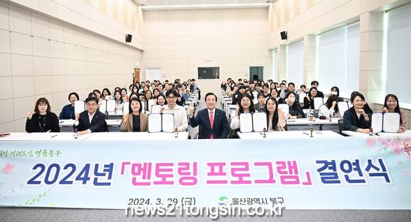 (뉴스21통신/권혁진기자) = 울산 북구는 29일 평생학습관에서 신규공무원과 선배공무원의 멘토링 프로그램 멘티-멘토 결연식을 가졌다.