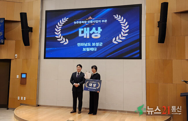 [뉴스21 통신=박철희 ]보성군(군수 김철우)은 지난 18일 서울 송파구 SKY31 컨벤션에서 열린 농림축산식품부 주최 ‘2025년 농촌융복합산업 우수사례 경진대회’에서 보성군 보림제다(주)영농조합법인(이하 보림제다)가 인증사업자 분야 대상을 수상했다고 밝혔다.올해로 13회를 맞은 이번 경진대회는 농촌융복합산업의 우수 사례를 발굴.