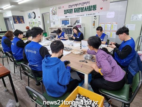 (뉴스21통신/권혁진기자) = (주)NVH KOREA(대표이사 구자겸)는 29일 굿프렌즈 장애인보호작업장에서 부품조립 작업보조 봉사활동을 했다.