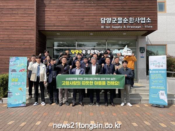 김용희 담양군 물순환사업소장과 강무성 영광군 상하수도사업소장이 참석한 가운데 진행된 상호기부는 고향사랑기부제의 성공적인 정착과 활성화를 위해 노력하겠다는 다짐과 함께 양 기관의 직원 50명이 기부를 실천하기로 했다.
